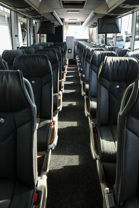 Our brand new 56 Passenger Deluxe Coaches-2024 Model, are the most luxurious in our fleet. They have beautiful new interiors and offer superior comfort for your group.